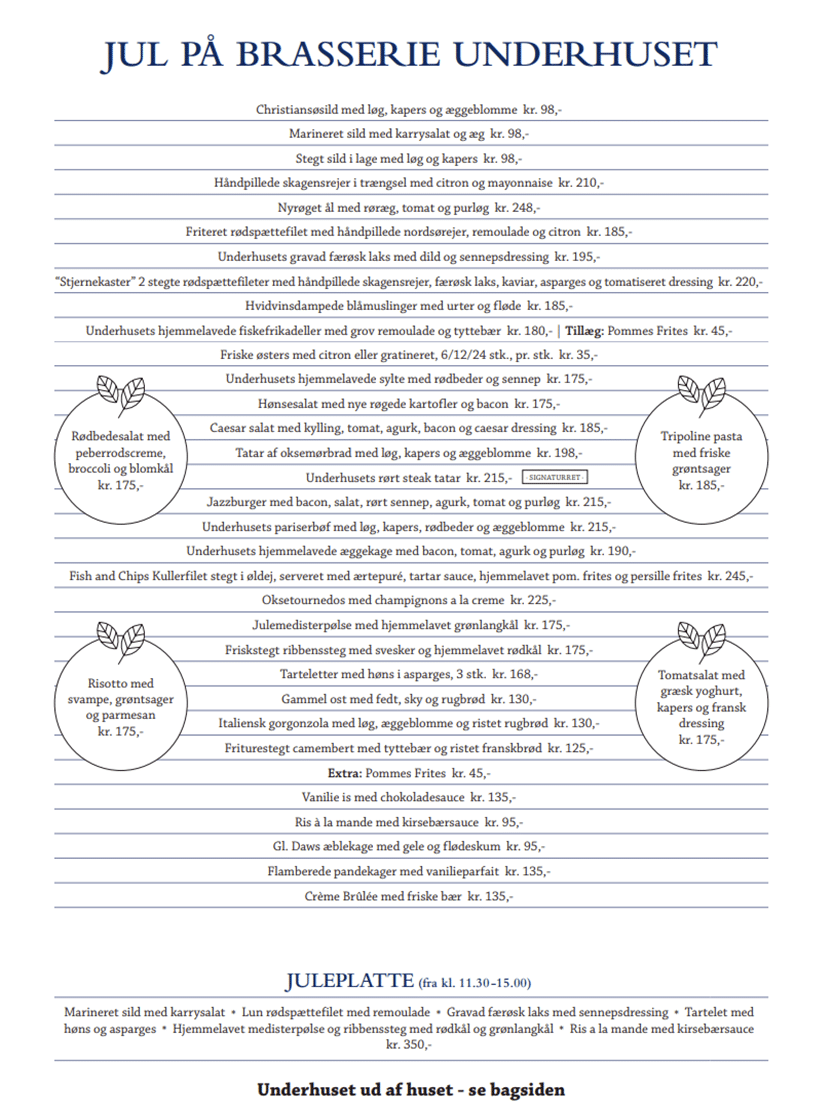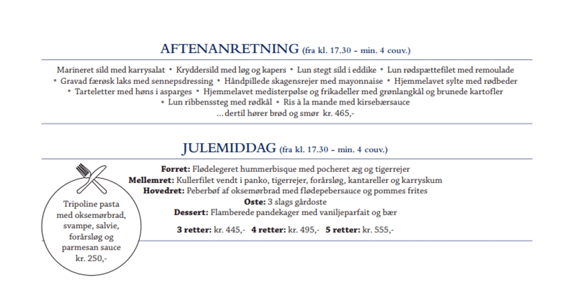 Vælg imellem vores juleanretning eller vores 3 retters menu